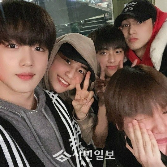 공개된 사진 속에는 이진혁과 김요한, 김민규, 남도현, 이한결이 함께 찍은 셀카가 담겨 훈훈함을 자아냈다.