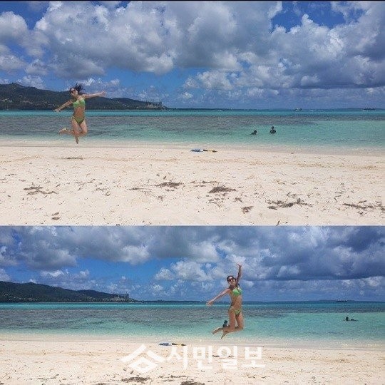 공개된 사진 속에는 채은정이 연두빛 비키니를 입고 늘씬한 몸매와 함께 우월한 기럭지를 과시해 감탄을 자아냈다.