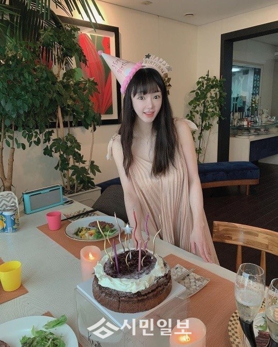 배우 서우는 자신의 인스타그램에 "진짜 맛있었던 케익 샴폐 스테익"이라는 글과 함께 한 장의 사진을 게재했다.