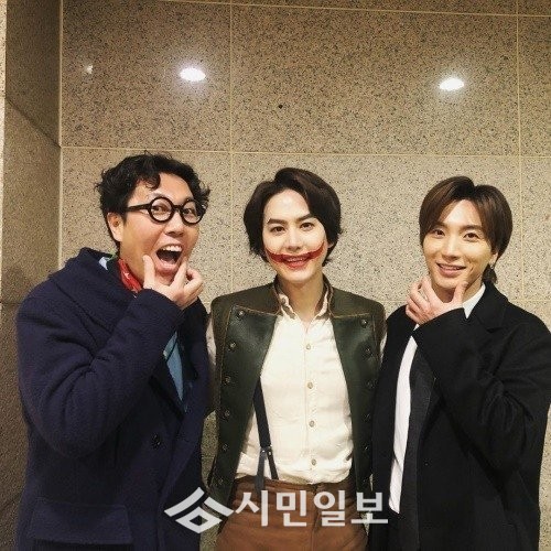 공개된 사진 속 김영철은 뮤지컬 '웃는 남자'를 관람한 뒤 이특과 함께 대기실을 방문, 규현과 인증샷을 남기고 있는 모습으로 훈훈함을 자아냈다.
