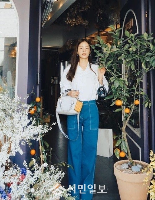 기은세는 자신의 인스타그램을 통해 "다리 길어보이는 마법바지 입고 귤나무 키우고 싶어졌던 어느날"이라는 글과 함께 사진을 게재했다.