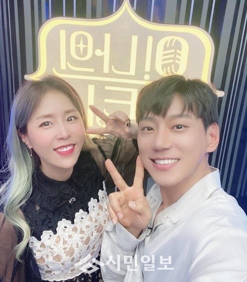 공개된 사진 속 신지는 MBC '오! 나의 파트,너' 녹화장에서 황치열과 셀카를 찍으며 화기애애한 모습을 드러내 훈훈함을 자아냈다.