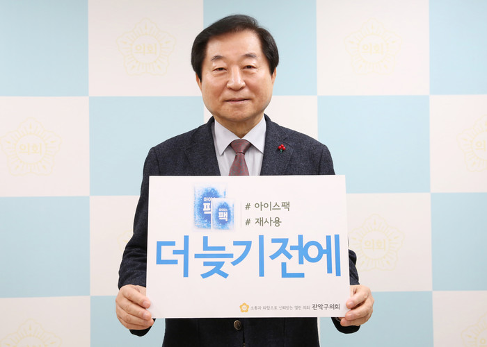 [시민일보 = 여영준 기자] 길용환 관악구의회 의장이 최근 ‘더 늦기 전에’ 아이스팩 재사용 릴레이 캠페인에 동참했다.
