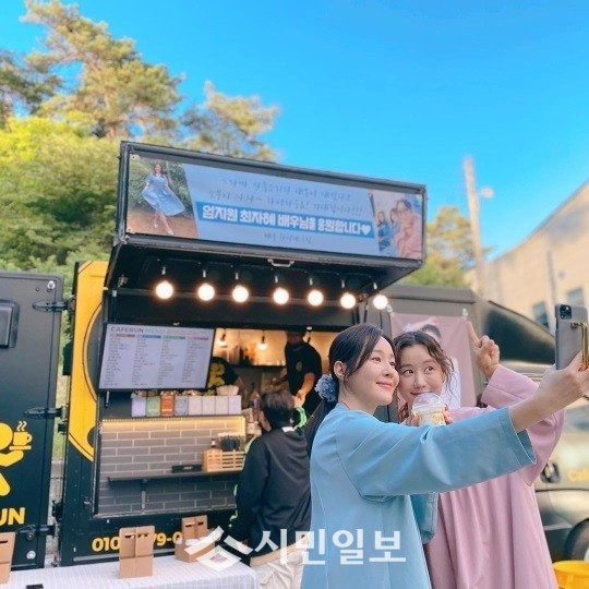 공개된 사진에는 엄지원과 최자혜가 한지혜가 보낸 간식차 앞에 서서 포즈를 취하고 있는 모습이 담겨 훈훈함을 자아냈다.