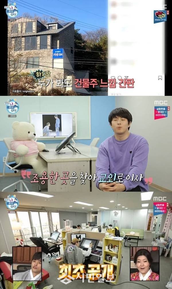 이날 기안84는 '새 사무실 외관을 보면 건물주 같다'는 말에 "한 층만 세 들어 쓰고 있다. 간판을 달아보고 싶었다. 제일 싼 걸로 했다"고 밝혔다.