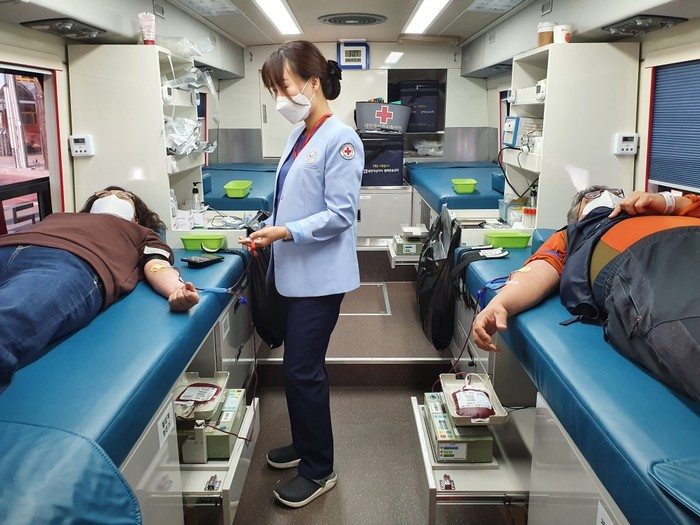 경남 거창군은 26일 코로나19 장기화로 인한 헌혈 수급난을 해소하고 원활한 혈액 수급을 위해 거창군청 앞 로터리와 한국승강기대학교, 경남도립거창대학에서 대한적십자사 경남혈액원과 함께 헌혈버스 5대를 이용해 ‘코로나19 극복 사랑의 헌혈 릴레이’ 행사를 실시했다.