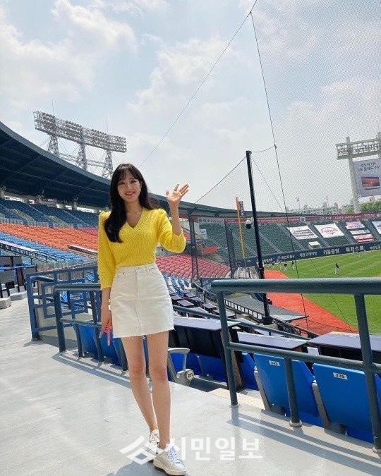 사진 속 주시은은 야구장에서 눈부신 미모를 뽐내며 상큼발랄한 아우라를 드러내 팬심을 사로잡았다.