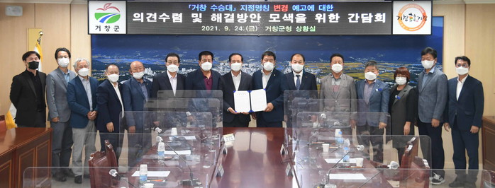 간담회는 지난 9월6일 문화재청이 거창 수승대를 거창 수송대로 지정명칭을 변경하겠다는 예고에 대응하기 위해 거창군 기관·단체 대표들이 한자리에 모여 현 사안에 대해 의견 및 대응계획을 논의했다.
