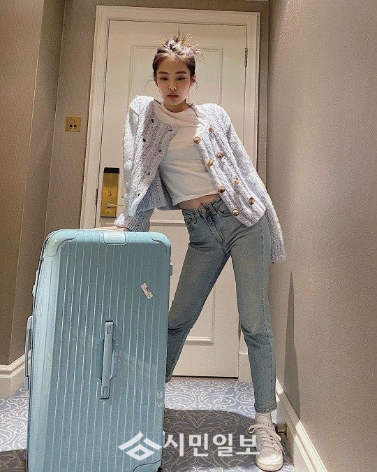 사진 속 제니는 데님에 카디건을 입고 조막만한 얼굴 크기로 놀라운 비율을 자랑하며 팬들의 이목을 사로잡았다.