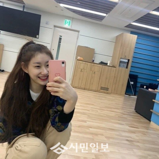 사진 속 채령은 포니테일 머리를 한 채 연습실 거울을 바라보며 순수한 미소를 선보이며 팬심을 사로잡았다.