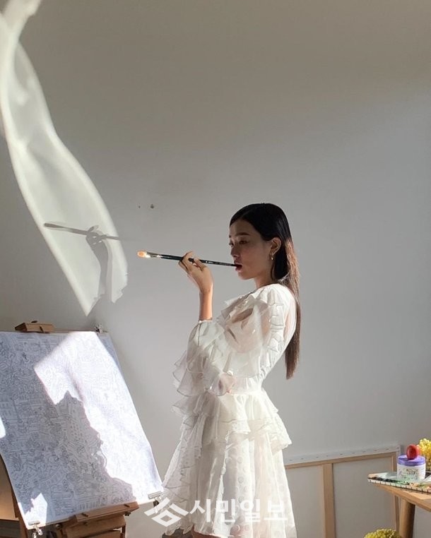 사진 속 슬기는 하얀 원피스를 입은 채 캔버스 앞에 서있는 모습으로 팬들의 눈길을 모았다.