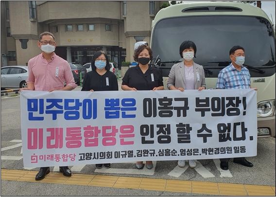 [고양=이기홍 기자] 경기 고양시의회 미래통합당(이하 통합당) 소속 의원 5명이 같은 당 소속 이홍규 부의장의 사퇴를 촉구하고 나서 지역정가가 시끌시끌하다.