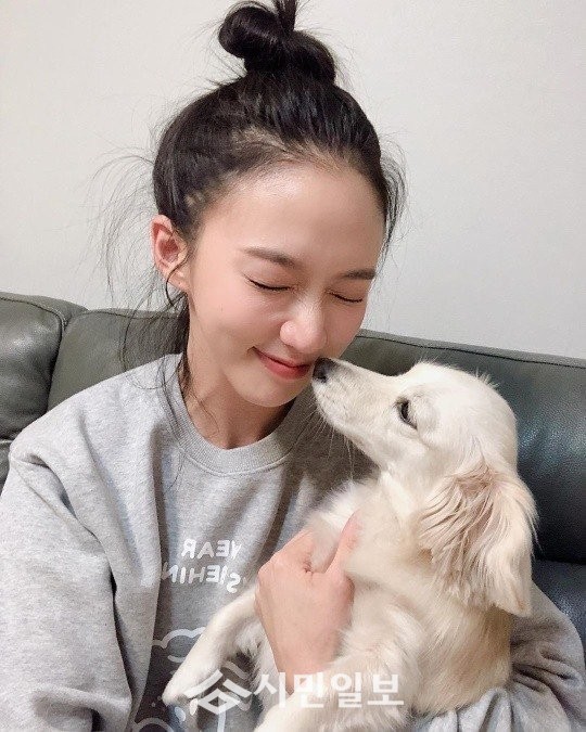 사진 속 고성희는 올림머리를 하고 반려견과 함께 다정한 모습을 선보이며 훈훈함을 자아냈다.