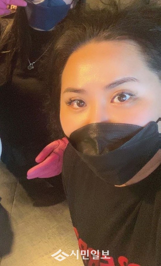 공개된 사진 속 홍선영은 마스크를 쓰고 22kg 감량 이후 더욱 홀쭉해진 얼굴을 공개해 감탄을 자아냈다.