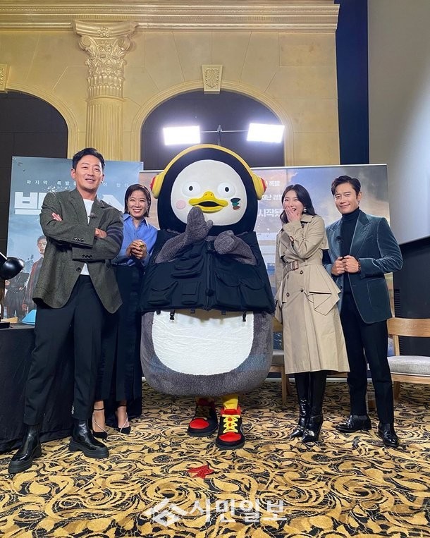 공개된 사진 속 펭수는 하정우, 전혜진, 배수지, 이병헌과 함께 포즈를 취한 모습으로 감탄을 자아냈다.