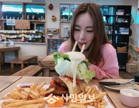 공개된 사진 속에는 압도적인 사이즈를 자랑하는 햄버거를 바라보며 설레는 표정을 짓고있는 아내 간미연의 모습이 담겨 웃음을 자아냈다.