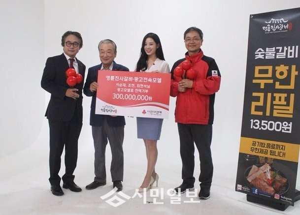 함께 공개된 사진에는 ‘명륜진사갈비 광고전속 모델 이순재, 조현, 최현석님 광고모델료 전액 기부 300,000,000원’이라는 팻말을 든 조현과 이순재의 모습이 담겨 훈훈함을 자아냈다.