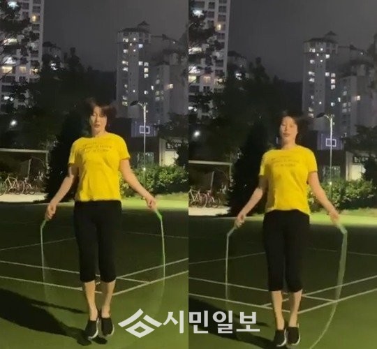 공개된 사진 속 나비는 야밤 공원에서 줄넘기를 하며 인증샷을 남기고 있는 모습으로 이목을 사로잡았다.