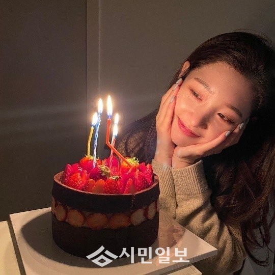 가수 정채연은 자신의 인스타그램에 "초가 있길래 그냥 켜 보았다. 마치 내 생일마냥 케잌먹을생각에 행복하다 #딸기가득가득"이라는 글과 함께 사진을 게재했다.