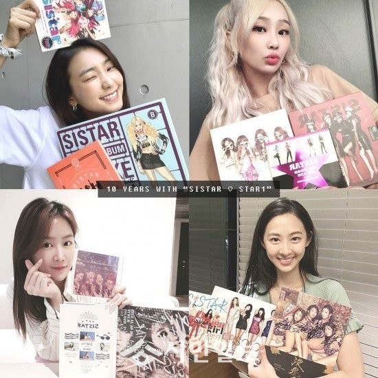 공개된 사진 속에는 효린과 소유, 다솜, 보라 등 씨스타 멤버들의 10주년 기념 인증샷이 담겨 훈훈함을 자아냈다.