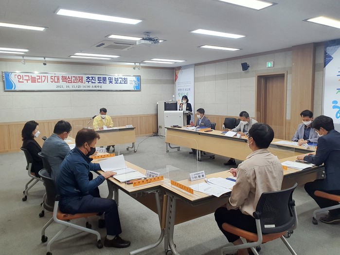 이번 보고회는 앞선 인구늘리기 종합 계획 중 5대 핵심 추진과제로 언급 되었던 분야별 사업에 대해 과제추진 담당주사가 직접 사업에 대해 보고하고 토론 등을 통한 개선 방향 도출하기 위해 마련됐다.