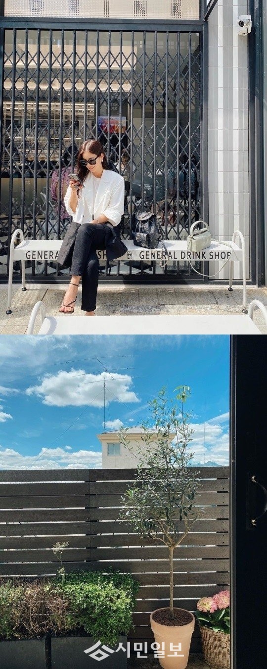 배우 기은세는 자신의 인스타그램을 통해 "Good morning 오늘 아침 창밖을 바라보면서 신다은이 어제 찍어준 사진 투척. 새로 사온 올리브 나무가 너무 예쁘네요"라는 글과 함께 사진을 게재했다.