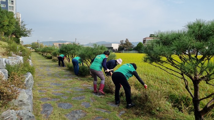 충남 아산시 온양3동 새마을협의회는 최근 반송과 영산홍 등이 식재된 모종동 특색 꽃길과 신리초등학교 통학로의 수목 전지 및 제초 작업을 실시했다. 사진은 이날 협의회 회원들이 수목 전지 및 제초 작업을 하는 모습.(사진제공=아산시청)