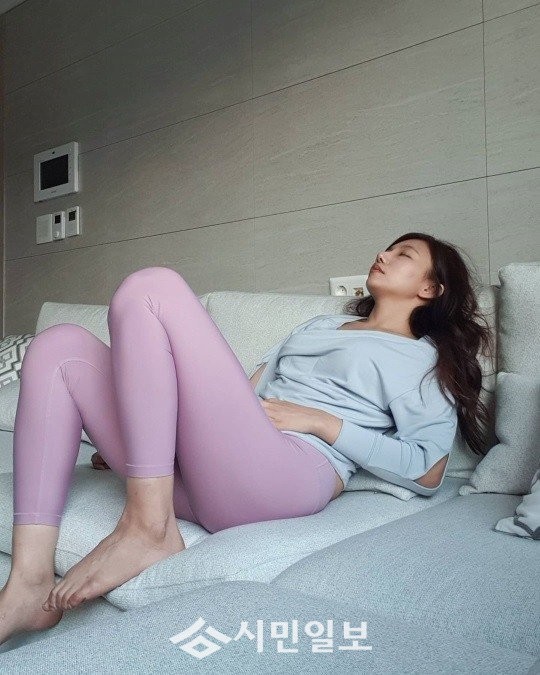 공개된 사진 속 이채영은 독특한 디자인의 티셔츠에 보랏빛 레깅스를 입고 쇼파에 기댄 채 숙면을 취하고 있는 모습으로 시선을 사로잡았다.