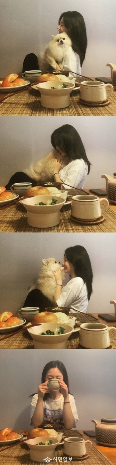 공개된 사진 속에는 강아지를 끌어안고 화기애애한 모습으로 저녁시간을 보내는 모습이 담겨 훈훈함을 자아냈다.