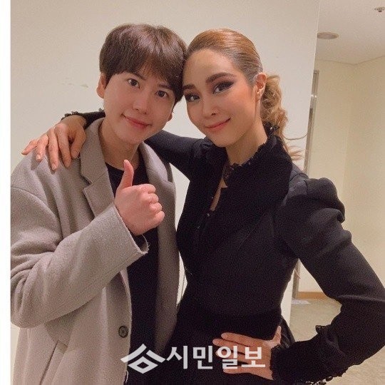 공개된 사진 속에는 규현과 옥주현이 어깨동무를 한 채 카메라를 응시하고 있는 모습으로 훈훈함을 자아냈다.