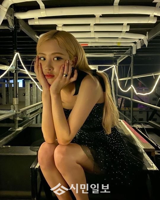 사진 속에는 블랙 원피스를 입은 로제가 꽃받침 포즈를 취하며 시크한 눈빛을 과시하는 모습이 담겨 감탄을 자아냈다.