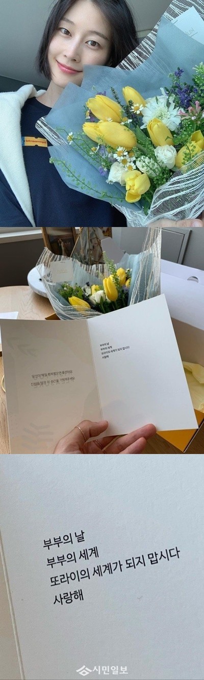 모델 이현이는 자신의 인스타그램을 통해 "어머머머머머머 #부부의날 이래요. 갑작스런 꽃 배달에 깜짝 놀랐네. 진심이 담긴 카드도 고마워"라는 글과 함께 사진을 게재했다.