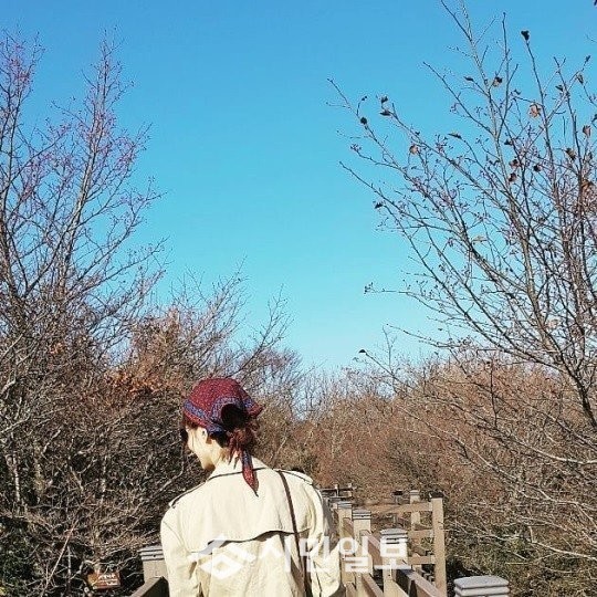 공개된 사진 속 송경아는 청명한 하늘과 함께 메마른 나무들 사이에서 트렌치코트를 입고 두건을 쓴 채 산책하는 모습으로 감탄을 자아냈다.