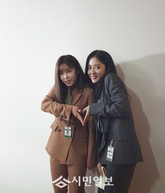 공개된 사진 속 전효성과 이세영은 다정하게 한 손씩 맞대며 손하트를 그리고 있는 모습으로 웃음을 자아냈다.