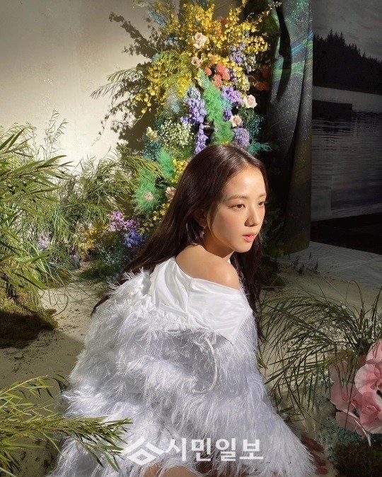 공개된 사진 속에는 지수가 흰색의 하늘거리는 원피스를 입은 채 꽃들 사이에 앉아 있는 모습으로 팬심을 사로잡았다.