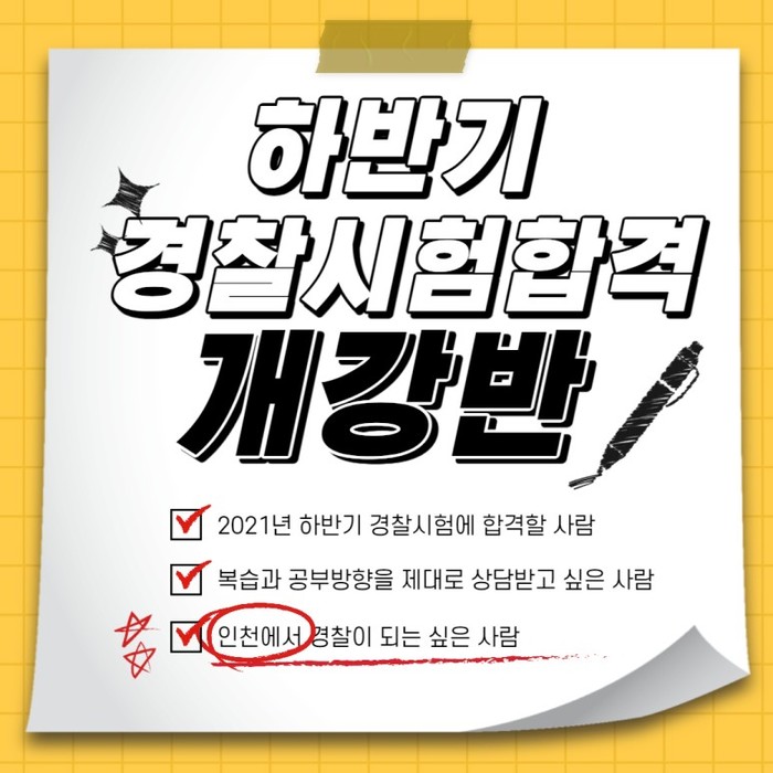 독한 에듀윌 경찰 부평학원이 운영하는 ‘기본이론반’은 2021년 8월에 진행되는 경찰공무원 2차 필기시험 과 2022년 경찰공무원을 준비하는 수험생 모두가 수강할 수 있다. 이번 수업은 기본 이론을 중심으로 개편된 과목과 2021 경찰 공무원 합격 트렌드를 집중적으로 다룰 예정이다.