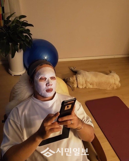 공개된 사진에는 채리나의 남편이 헤어밴드를 착용하고 마스크팩을 붙인 채 휴대폰을 하고, 채리나의 반려견 박영순이 편안하게 누워 자고 있는 모습으로 웃음을 자아냈다.