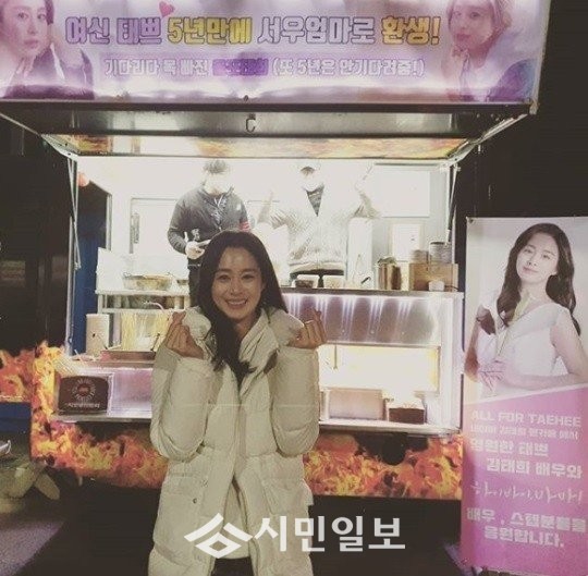 김태희는 자신의 인스타그램을 통해 "ALL FOR TAEHEE 팬카페에서 준비해주신 간식차 덕분에 어제 퇴근길 차안에서 늦은밤 야식파티를 거하게 했네요^^~"라고 인사했다.