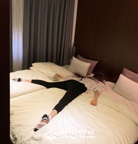 공개된 사진 속에는 양미라가 큰 침대에서 대자로 누워 있는 모습이 담겨 웃음을 자아냈다.