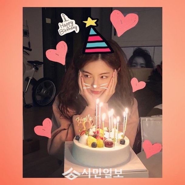 사진 속 이선빈은 자신의 생일 케이크 앞에 턱받침을 하고 사랑스러운 분위기를 연출해 팬심을 사로잡았다.