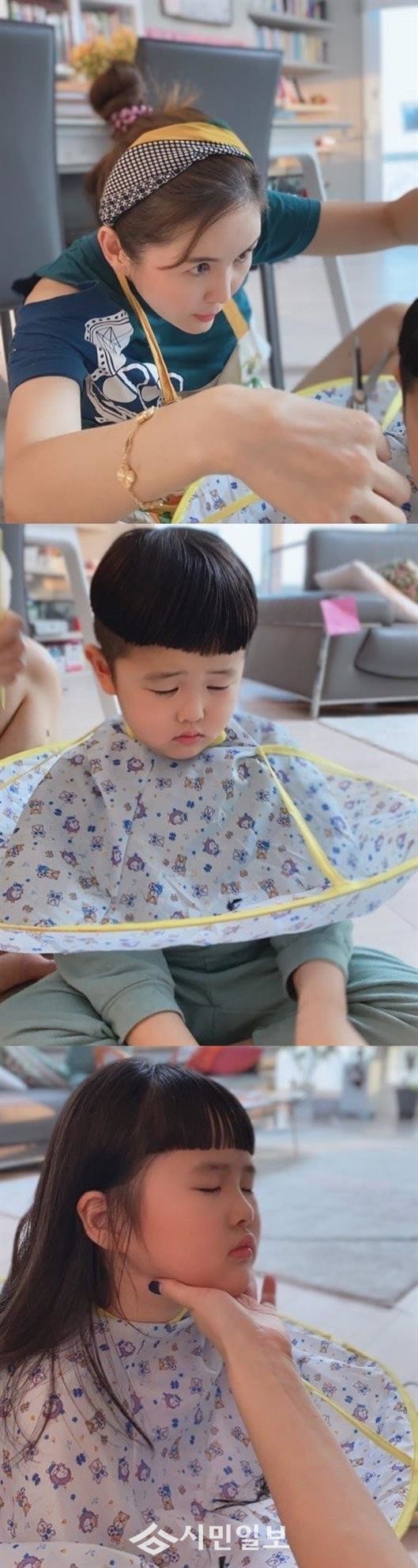 공개된 사진 속에는 장영란의 손길에 머리카락을 맡긴 채 불안한 표정을 짓고 있는 아이들의 모습이 담겨 웃음을 자아냈다.