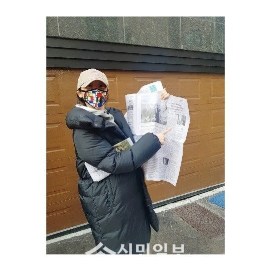 공개된 사진 속 혜림은 캡모자에 컬러풀한 마스크를 쓴 채 신문을 들고 자신의 기사를 손가락으로 가리키며 뿌듯해하고 있는 모습으로 웃음을 자아냈다.