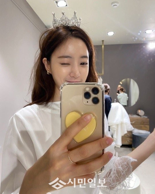 함은정은 자신의 인스타그램에 "피팅 보다가 귀여워서 얹어봄"이라는 글과 함께 한 장의 사진을 게재했다.
