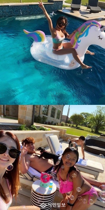 공개된 사진 속 추신수 가족은 수영장에서 즐거운 시간을 보내는 모습이 담겨 훈훈함을 자아냈다.