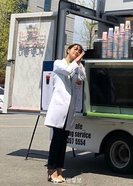 공개된 사진 속 이민정은 절친 이정현이 KBS 2TV 주말드라마 '한 번 다녀왔습니다' 촬영장으로 보내준 간식차 선물과 함께 인증샷을 찍는 모습으로 훈훈함을 자아냈다.
