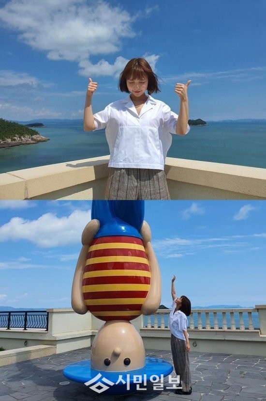 사진 속에는 박진주가 멋진 바다를 배경으로 엄지 척 포즈를 하며 청량한 아우라와 화사한 미모를 드러내 팬심을 사로잡았다.