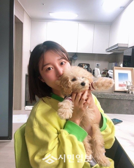 사진 속 나비는 반려견과 함께 화장기 없는 얼굴로 수수한 모습을 뽐내며 감탄을 자아냈다.