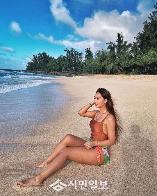 사진 속 김희정은 갈색 비키니를 입고 건강미 넘치는 몸매를 뽐내 감탄을 자아냈다.