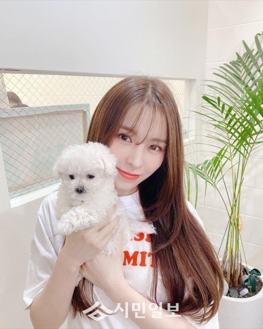 사진 속 엘키는 상큼발랄한 미모를 뽐내며 새끼 강아지를 안고 행복한 미소를 짓는 모습으로 훈훈함을 자아냈다.