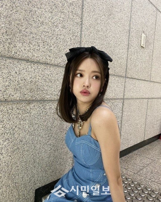 사진 속 유아는 요정 미모를 뽐내며 데님으로 된 뷔스티에 원피스에 왕리본 머리띠로 사랑스러운 아우라를 드러내 남심을 사로잡았다.